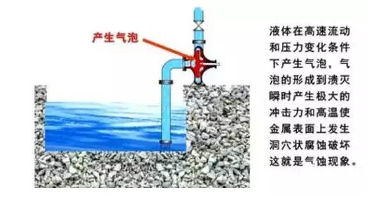 含氣泡的液體擠入高壓區后急劇凝結或破裂。因氣泡的消失產生局部真空,周圍的液體就以極高的速度流向氣泡中心,瞬間產生了極大的高達幾萬kpa的高速沖擊力,造成對葉輪和泵殼的沖擊,使材料受到侵蝕和破壞。