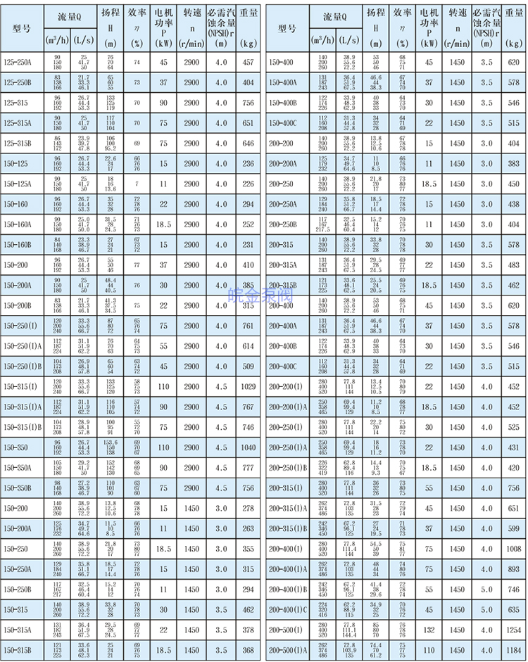 揚程范圍:5m-125m
