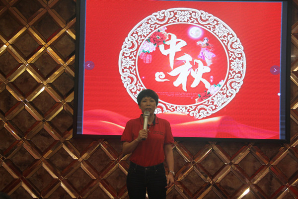 晚會現場我們準備了很多節目,不僅僅只有美味佳肴,還有我們睿牛家人個人魅力展現,以及抽講、猜燈謎環節。大家可以看到一下的圖片,我們全廠的人都身穿廠服,廠服上刻有:好羽絨睿牛制造,沖鋒衣睿牛更專業!這里打打廣告哈。節目進行前,首先是我們的總經理進行中秋致詞【以下圖片是我們總經理】,她以身作則,陪伴著我們穿廠服,為我們加油打氣!“抽講”環節到了,我們兩位主持人想了一個抽講,不是抽獎哦,而是給每一位家人編一個號,抽到數字編號的上來進行演講,當然演講完了之后也會獎品拿的,紅酒一瓶喲!哈哈,小編作為DJ也是有的,嘻嘻!最后呢就是猜燈謎環節,猜對的人就獲得獎品柚子一個,大家也是很積極踴躍哦!那么晚會到這里也快要結束了!