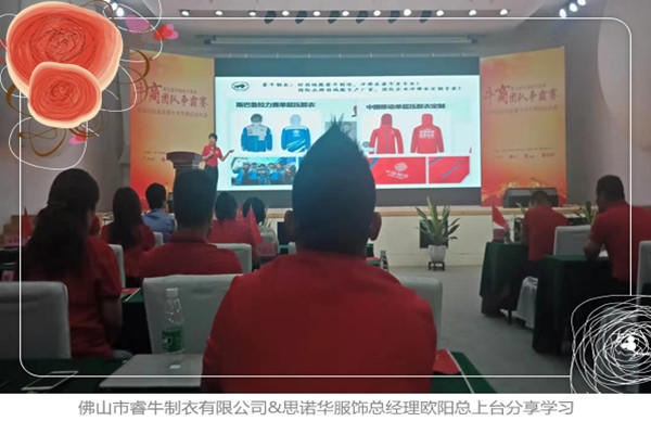 首先是總結(jié),現(xiàn)場有很多各大各行業(yè)的企業(yè)家上臺來總結(jié)學(xué)習(xí)分享,我們總經(jīng)理歐陽總被邀請上臺分享,請看以下圖片,PPT 上面寫著:好羽絨服睿牛制造,沖鋒衣睿牛更專業(yè)!國際品牌羽絨服生產(chǎn)廠家,團隊企業(yè)沖鋒衣定制專家!大家有這方面的需求可以記住我們并聯(lián)系思諾華工廠哦!