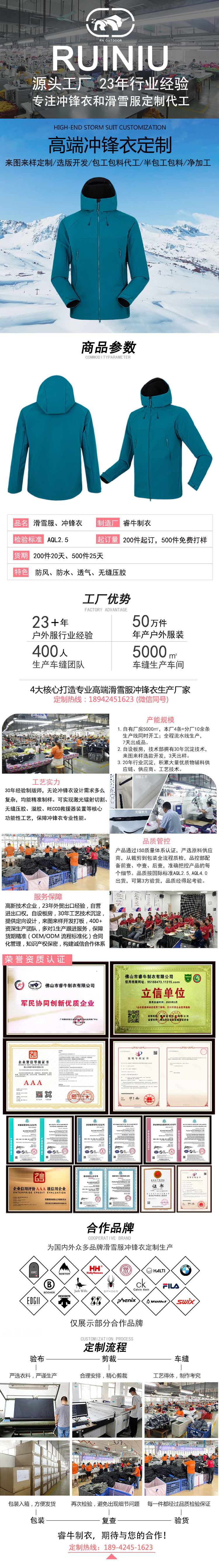 廣東睿牛戶外用品有限公司:專注沖鋒衣、滑雪服、風衣、夾克的梭織服裝定制加工廠家