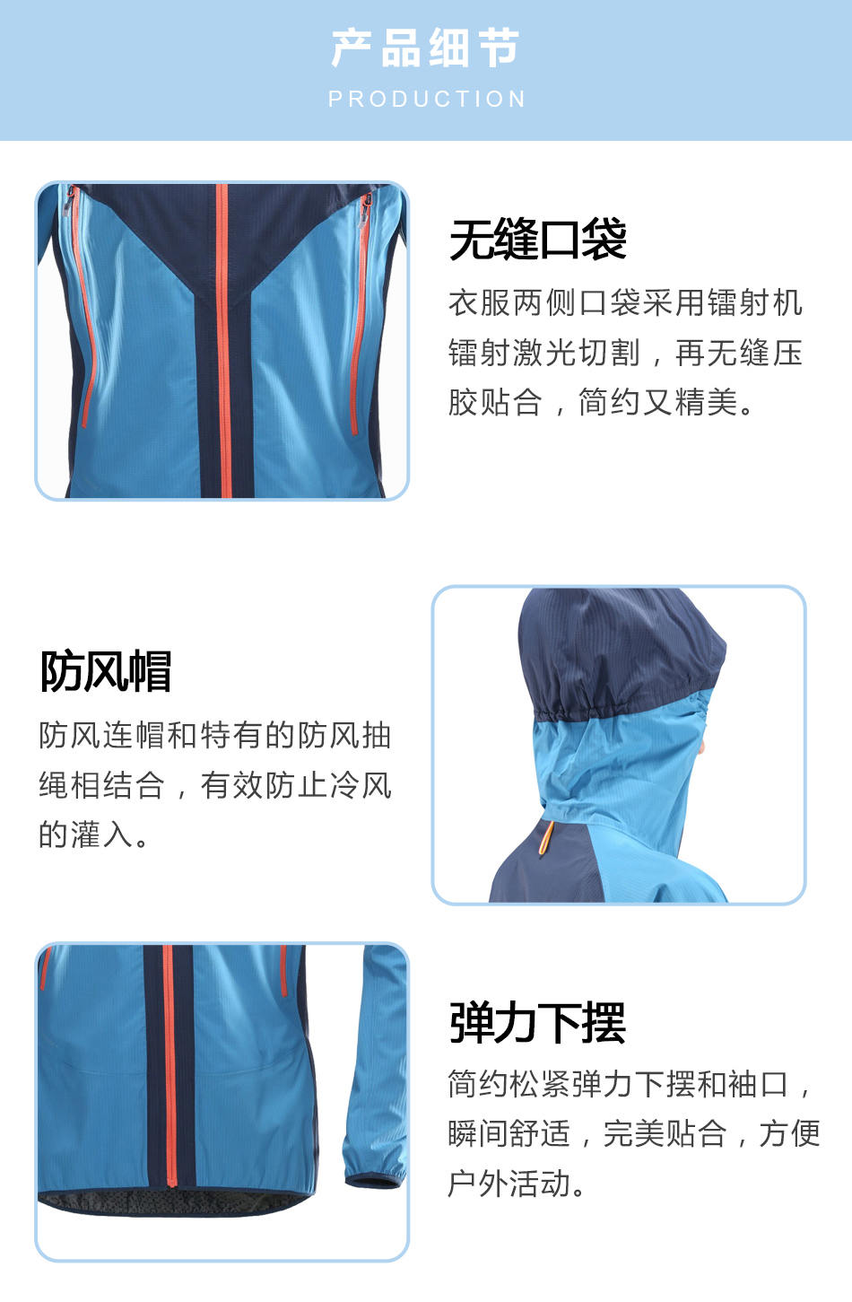 • 防風帽單層壓膠沖鋒衣的防風連帽和特有的防風抽繩相結合,有效防止冷風的灌入。
