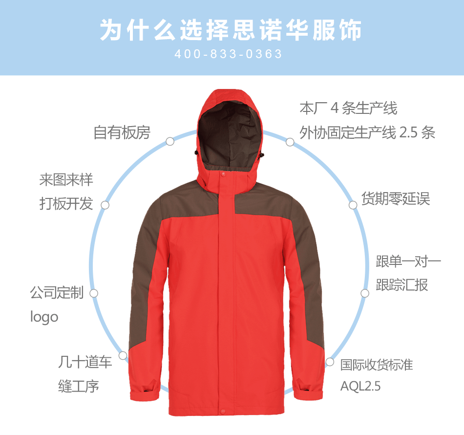可拆卸三合一:校服沖鋒衣三合一,三種穿法自由選配羽絨服&搖粒絨,保暖、防風(fēng)、輕便、方便攜帶。