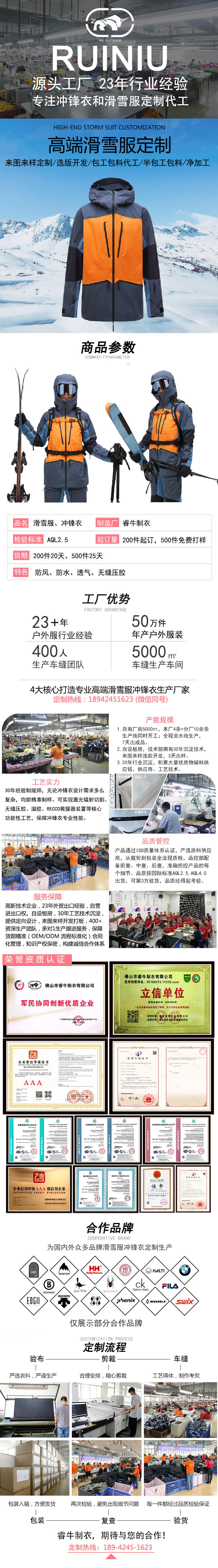 優(yōu)質(zhì)面料:專業(yè)高端滑雪服定制23年沉淀優(yōu)質(zhì)供應(yīng)商資源,可根據(jù)客戶需求精選優(yōu)質(zhì)面料。